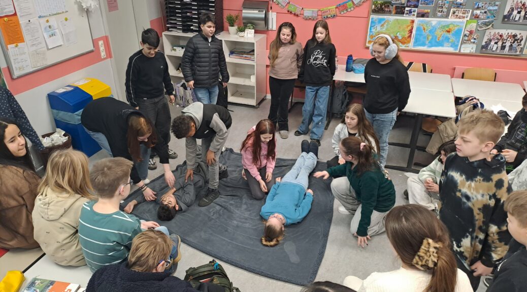 Am Freitag hatten wir Besuch von Schülerinnen aus dem 8. Jahrgang: Anna Wehrmann, Leonie Rösner und Joenna Gisa. Sie sind Mitglieder des Sanitätsdienstes unserer Schule.